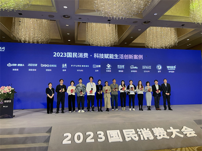 2023國(guó)民消費(fèi)大會(huì)科技賦能生活案例獲獎(jiǎng)企業(yè)代表上臺(tái)領(lǐng)獎(jiǎng)合照