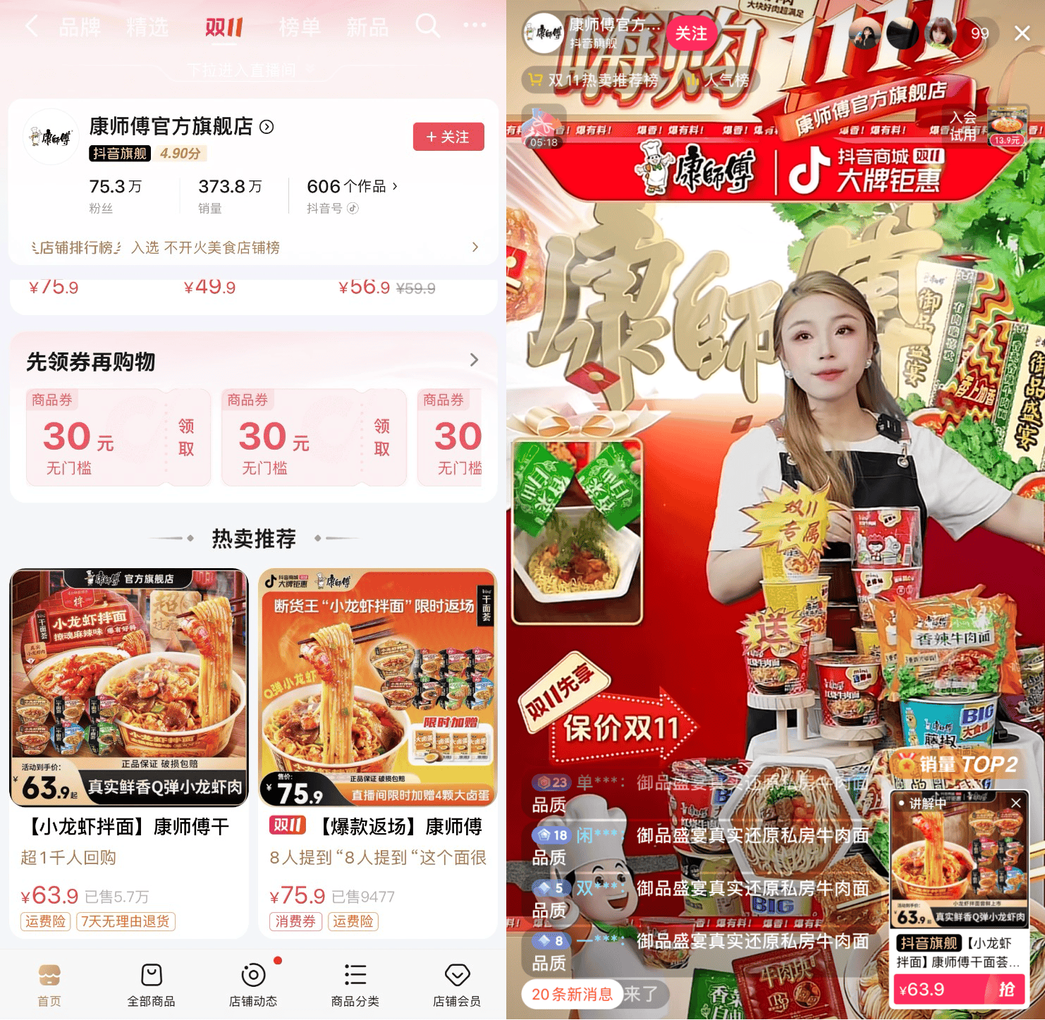 在渠道布局上,康師傅似乎也抓住了興趣電商的風(fēng)口,將小龍蝦拌面聚焦于抖音平臺的短視頻和直播形式。通過趣味化的內(nèi)容和強互動屬性,有效激發(fā)年輕用戶的體驗式消費需求。短視頻、直播等形式的展示,不僅提高了產(chǎn)品的曝光度,還增加了用戶的參與感和購買欲望,使小龍蝦拌面的流量轉(zhuǎn)化率顯著提升。
