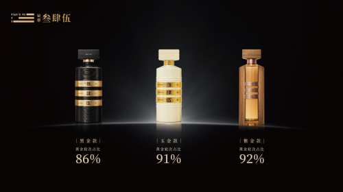 經(jīng)過400余天的研發(fā)周期、300多次基酒勾調(diào)以及上千次品評,叁肆伍白酒最終成功把3、4、5黃金輪次基酒的比例,提升到了86%、91%、92%。在此基礎(chǔ)上,基酒中又加入了10-20年不同年份、不同比例的調(diào)味酒,獲得質(zhì)感更加醇厚豐滿的黃金比例酒體,歲月與品質(zhì)的雙重稀有,難以再有。
