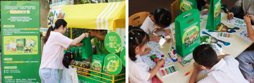 就診家庭領(lǐng)取營(yíng)養(yǎng)關(guān)愛(ài)禮包,小朋友在現(xiàn)場(chǎng)參與填色互動(dòng)