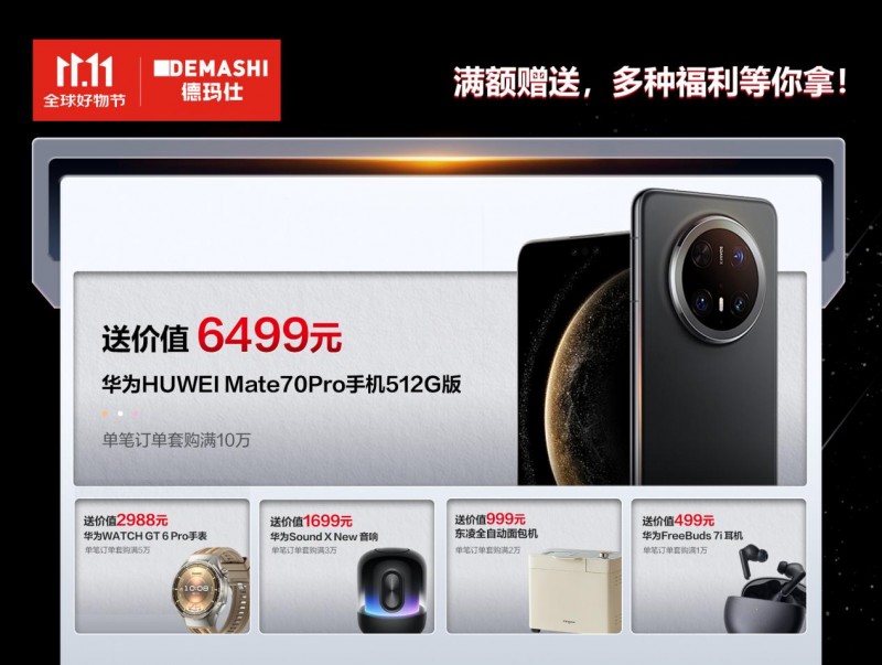 滿100,000元,即贈價值6499元華為HUAWEI Mate 70 Pro手機(512G),尊享頂級科技旗艦,成就非凡!