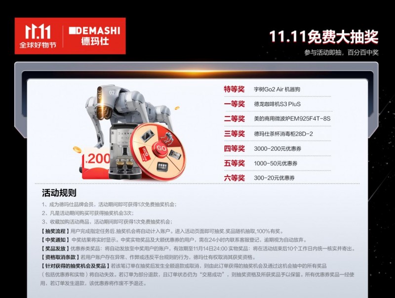 年終采購,是成本控制的關鍵一役,更是提升團隊福祉的絕佳時機。作為單位廚房設備領導品牌,德瑪仕精準匹配批量采購痛點,在“11.11智慧廚房超省購節(jié)”重磅推出兩大普惠福利——“滿額贈華為豪禮”與“11.11免費大抽獎”,以實實在在的優(yōu)惠與驚喜,助您實現(xiàn)成本與體驗的雙重優(yōu)化。機會難得,錯過再等一年!