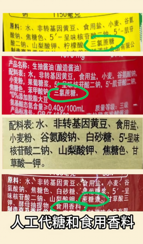 然而,市面上不少所謂的“減鹽醬油”其實只是兌水稀釋,看似鈉含量降低了,但這樣會破壞醬油原有的香氣和防腐能力。于是廠家為了補味又加上增鮮劑、人工香料,為了彌補鹽作為天然防腐劑的功效又加入防腐劑等成分,配料表越寫越長。這樣的“假減鹽”不但沒起到控鹽效果,反而讓孩子接觸到更多不必要的添加劑。