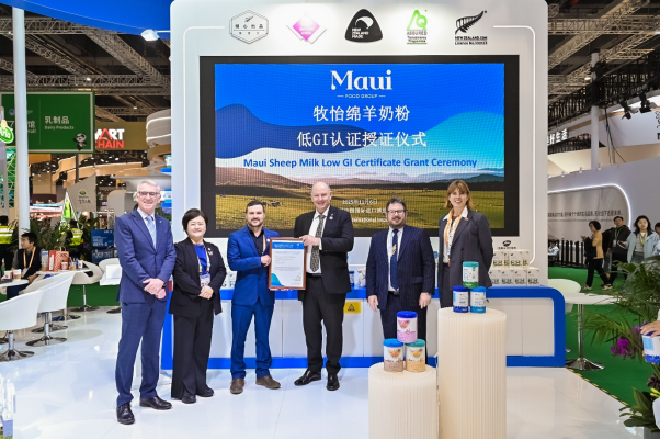 在新西蘭政府代表團(tuán)的見證下,新西蘭駐華大使Dr. Jpnathan Austin正式向牧怡頒發(fā)低GI(Low-Glycemic Index)認(rèn)證證書,認(rèn)證牧怡全脂和脫脂綿羊奶粉產(chǎn)品在血糖反應(yīng)控制方面表現(xiàn)優(yōu)異。