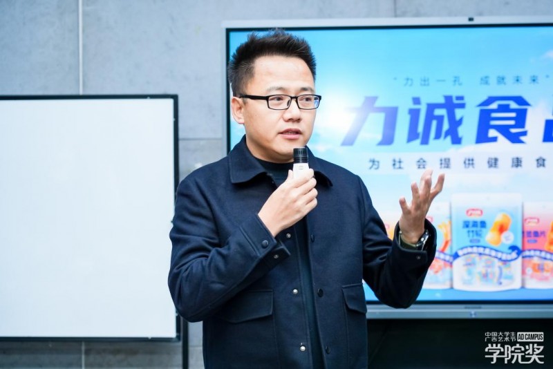 為將課堂命題落地為具體的品牌需求,福建省力誠食品有限公司產(chǎn)品總監(jiān)王巍巍先生為同學(xué)們帶來了深入的品牌洞察。王巍巍先生從“為社會提供健康食品”的企業(yè)使命出發(fā),系統(tǒng)介紹了力誠食品十九年來專注鱈魚腸品類的研發(fā)歷程與技術(shù)積淀。圍繞本次設(shè)計(jì)課題,特別聚焦于力誠健康海洋食品系列,深入解析了“每日補(bǔ)充優(yōu)質(zhì)海洋蛋白質(zhì)”的產(chǎn)品價(jià)值,以及如何在包裝視覺上有效傳達(dá)“高蛋白低脂肪輕負(fù)擔(dān)”等核心利益點(diǎn),為同學(xué)們提供了清晰的設(shè)計(jì)方向與真實(shí)的商業(yè)語境。