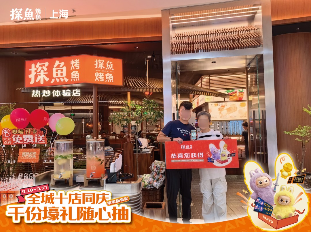 9月10日至17日,探魚烤魚在上海發(fā)起“全城十店同慶,‘魚'見好運(yùn)”主題活動(dòng),采購泡泡瑪特旗下熱門IP LABUBU,通過“到店用餐+小程序抽獎(jiǎng)”的線上線下聯(lián)動(dòng)模式,為消費(fèi)者打造了一場潮玩與美食的沉浸式體驗(yàn)。