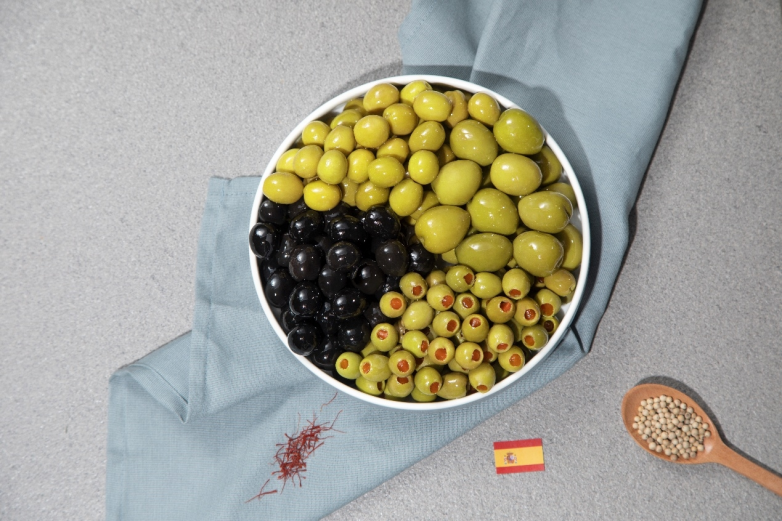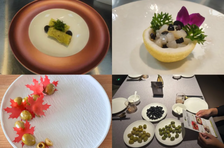 這幾道菜的風(fēng)味核心源于西班牙橄欖的獨(dú)特品質(zhì)?;顒又兴褂玫奈靼嘌篱蠙旌w多個(gè)代表性品種,如果肉厚實(shí)、口感清爽的戈代爾大青橄欖,風(fēng)味圓潤醇厚、適合燉煮的歐西布蘭卡黑橄欖,以及咸香爽脆、常用于開胃小食的曼薩尼亞青橄欖。這些橄欖均產(chǎn)自西班牙陽光充沛的種植區(qū),承載著地中海的陽光與風(fēng)土。