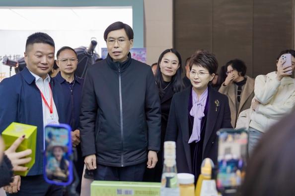 商務(wù)部原副部長房愛卿在西安市商務(wù)局及其他12相關(guān)地市商務(wù)局領(lǐng)導(dǎo)陪同下進(jìn)行了全省展區(qū)巡館。陜西華云集團(tuán)現(xiàn)場直播賣貨吸引了眾多參會領(lǐng)導(dǎo)和參展代表的駐足觀看,作為本次大會特色直播展區(qū)的陜西農(nóng)產(chǎn)品會展重點(diǎn)直播服務(wù)商,房愛卿部長現(xiàn)場觀摩并鼓勵現(xiàn)場參展企業(yè)繼續(xù)擴(kuò)大線上和線下的銷售規(guī)模。其中陜西三原四季溢香調(diào)味有限公司總經(jīng)理李同表示,早上活動開始,近一小時線上售賣超過500單。
