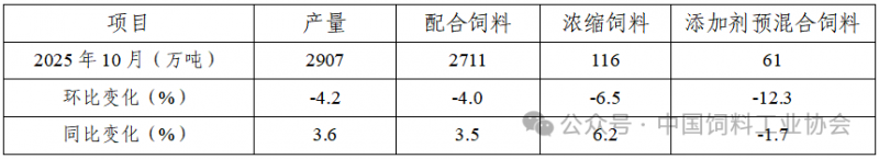 表1  2025年10月全國工業(yè)飼料生產(chǎn)情況