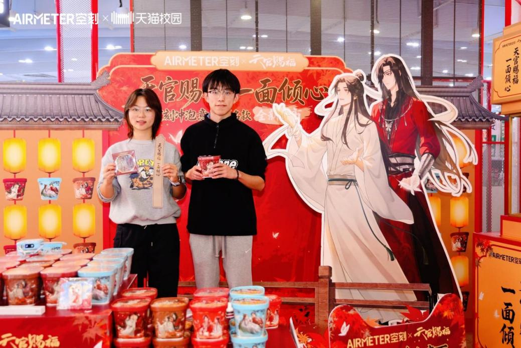 此次聯(lián)名中空刻將二次元情感符號(hào)融入產(chǎn)品體驗(yàn),跳出“產(chǎn)品+IP”的簡(jiǎn)單綁定,讓聯(lián)名款產(chǎn)品成為粉絲表達(dá)熱愛的紐帶;《天官賜福》動(dòng)畫則以超高人氣與深厚粉絲基礎(chǔ),為品牌注入精準(zhǔn)流量。空刻成功地將沖泡意面從一款便捷食品,升級(jí)為與動(dòng)畫角色產(chǎn)生聯(lián)結(jié)的情感載體。這份精神認(rèn)同的共鳴,正是品牌實(shí)現(xiàn)破圈的核心動(dòng)力。