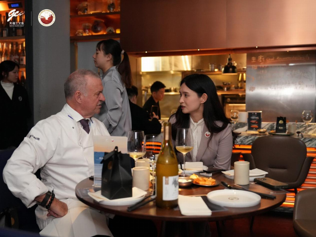 展會期間,一場名為“山海相逢·星廚共耀”的主題晚宴,將三文魚的品鑒體驗升華至藝術(shù)境界。來自全球的星級酒店主廚與米其林餐廳料理長齊聚一堂,以天蘊三文魚為靈感起點,展開了一場味覺與創(chuàng)意的深度對話。從低溫慢煮保留其細膩肌理,到巧妙運用現(xiàn)代分子料理技術(shù)解構(gòu)其風味層次,每一道菜品不僅是主廚匠心的演繹,也是天蘊三文魚純凈本味的生動詮釋。席間,圍繞這款來自中國本土的優(yōu)質(zhì)食材,諸多靈感火花與合作構(gòu)想悄然萌生,這場晚宴,也因而成為品牌與行業(yè)同仁真誠交流、彼此啟發(fā)的美好契機。