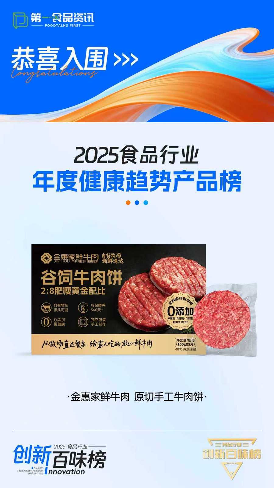 金惠家鮮牛肉餅,已成功入圍「第一食品資訊」2025食品行業(yè)年度健康趨勢產(chǎn)品!