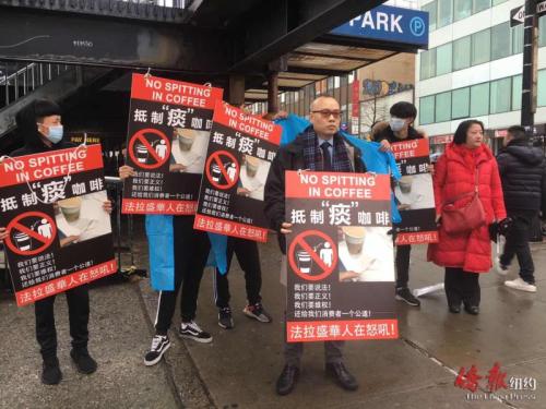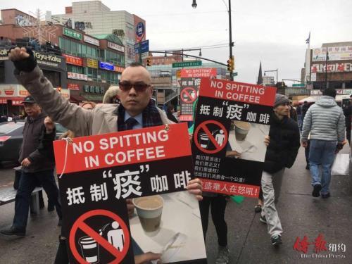 華裔民眾紐約示威 要求公開“痰咖啡”事件視頻