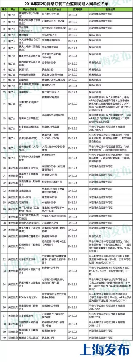 上海網(wǎng)絡(luò)餐飲服務(wù)監(jiān)測結(jié)果公布:這40家店鋪存在問題