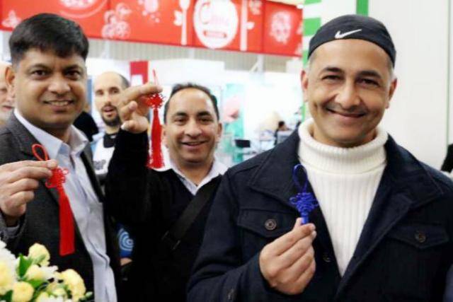 國外友人來到特侖蘇展館領取中國結伴手禮