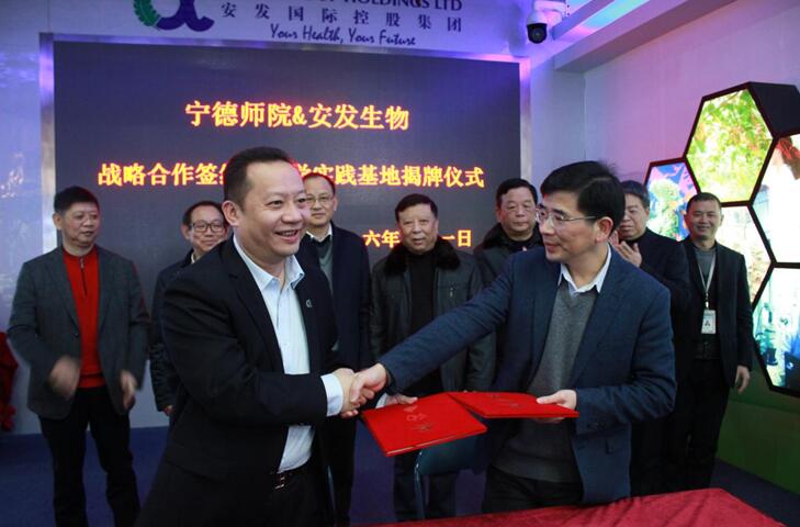 寧德師范學(xué)院與安發(fā)生物簽訂戰(zhàn)略合作協(xié)議,并在安發(fā)寧德生物科技園舉行了教學(xué)實(shí)踐基地揭牌儀式,意味著寧德師院與安發(fā)生物強(qiáng)強(qiáng)聯(lián)手共建教學(xué)實(shí)踐基地、推動(dòng)雙方業(yè)務(wù)共同發(fā)展,實(shí)現(xiàn)互利共贏。寧德師范學(xué)院黨委書記江小源、院長(zhǎng)林躍鑫和新西蘭皇家科學(xué)院生物活性研究中心首席科學(xué)家、新西蘭梅西大學(xué)博導(dǎo)和教授、安發(fā)國(guó)際董事長(zhǎng)高益槐教授;安發(fā)國(guó)際控股集團(tuán)全球總裁、安發(fā)(福建)生物科技有限公司總裁高煒以及其他相關(guān)領(lǐng)導(dǎo)、高管及研發(fā)骨干出席了本次儀式。