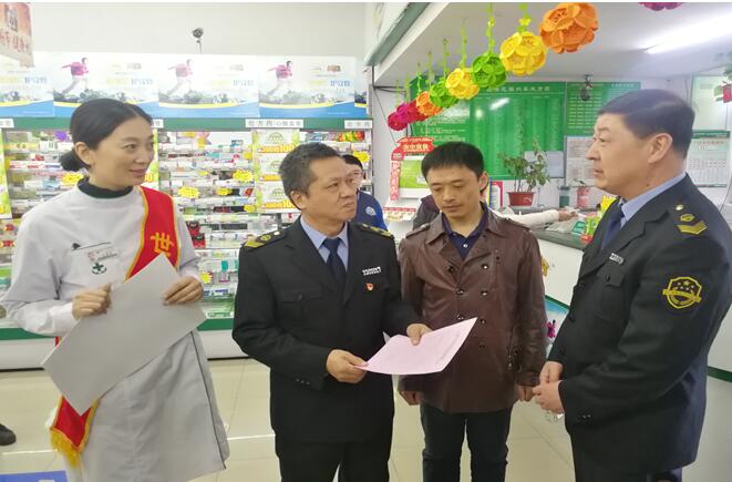 省食藥監(jiān)局保化處處長姚春翥(左二)檢查藥店現(xiàn)場