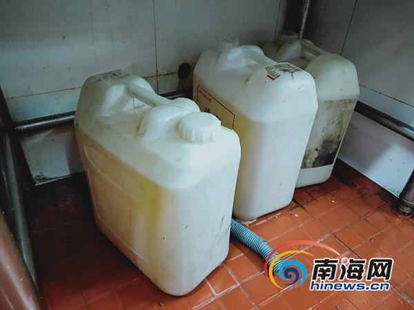 海口新城吾悅廣場(chǎng)4樓老西安餐廳廚房?jī)?nèi)使用的洗滌用品疑似三無(wú)產(chǎn)品。南海網(wǎng)記者姜飛 攝