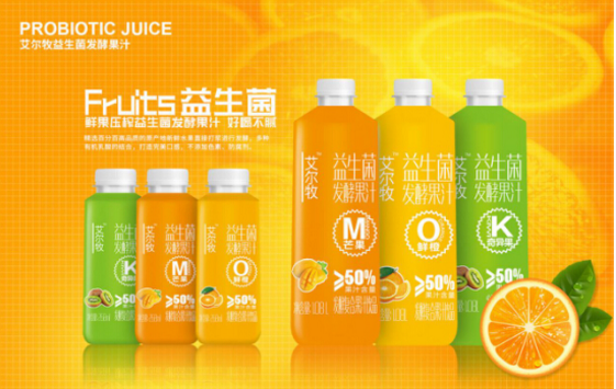 一款暢銷的產(chǎn)品,不僅要有優(yōu)異的品質(zhì),還要有高顏值的外表。艾爾牧益生菌發(fā)酵果汁系列,采用精美大氣的局部透明包裝,配以新鮮果汁圖片,果汁飲品與新鮮水果相互襯托,給人以視覺上的沖擊。彩色的布局,陳列時(shí),能夠第一時(shí)間抓住消費(fèi)者的目光。268ml、1.08L等PP瓶包裝,大氣上檔次;富貴不顯奢華。