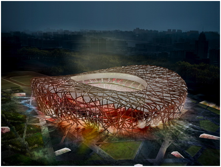 容量九萬(wàn)一千人的北京國(guó)家體育館是傳統(tǒng)體育場(chǎng)所和現(xiàn)代環(huán)保意識(shí)的完滿結(jié)合。其建筑設(shè)計(jì)者從大自然獲取設(shè)計(jì)靈感,設(shè)計(jì)了這個(gè)世界上最大的環(huán)境友善的體育。2008奧運(yùn)會(huì)將在這里舉行。