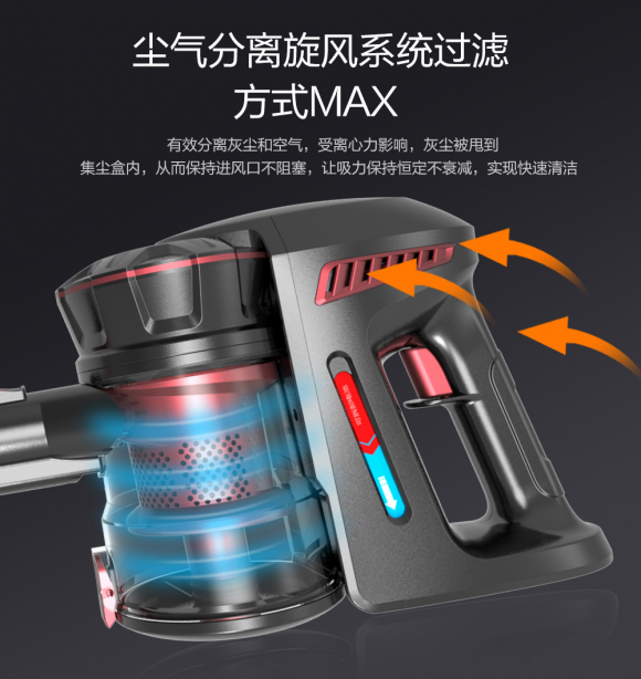 賽森是無線吸塵器領(lǐng)域的專業(yè)品牌,更生產(chǎn)出了全世界第一臺(tái)無塵袋吸塵器,技術(shù)上戴森強(qiáng)勁吸力對(duì)大小顆粒統(tǒng)統(tǒng)能一掃而空。作