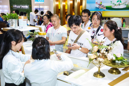 海普諾凱生物不僅展位設(shè)計(jì)出眾,旗下系列產(chǎn)品更吸睛搶眼,吸引了大批渠道商及消費(fèi)者前來洽談、咨詢,展會(huì)期間累計(jì)接待近萬人次!而區(qū)內(nèi)開展的近景魔術(shù)、荷蘭風(fēng)情舞蹈,讓來客紛紛駐足觀看互動(dòng);現(xiàn)場(chǎng)發(fā)放的鮮奶冰淇淋獲得了極高的人氣,不到兩天800多個(gè)冰淇淋就已被大小朋友們一掃而光。