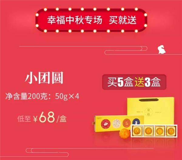 9月10日當(dāng)天,幸福西餅流心奶黃系列月餅滿盒即送。【小團圓】月餅買5盒送3盒,低至68元/盒;【同心圓】月餅買2盒送1盒,低至126元/盒;【大圓滿】月餅買2盒送1盒,低至199元/盒。