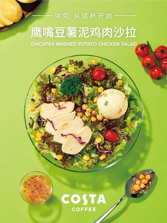除了五款秋季飲品,COSTA COFFEE還提供了多種美味輕食選擇。椰香咖啡蛋糕、抹茶提拉米蘇、香橙芝士蛋糕和烘焙芝士蛋糕以多種食材的完美搭配開啟秋季美味之享??оu派、牛肉薯蓉包和培根雞肉軟法三款新式面包是口感與能量兼顧的佐餐之選,鷹嘴豆薯泥雞肉沙拉,兼具健康營(yíng)養(yǎng)與繽紛爽脆,為這個(gè)秋天帶來健康生活體驗(yàn)。