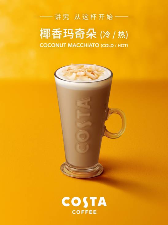 區(qū)別于傳統(tǒng)瑪奇朵在純牛奶泡加上一份濃縮咖啡,COSTA COFFEE巧妙地將椰奶代替?zhèn)鹘y(tǒng)牛奶。在品嘗咖啡的同時(shí),享受不同風(fēng)格的奶香,清新而又不失豐富的層次。那一層椰子片則成為了點(diǎn)睛之筆,造就自然清新的椰香風(fēng)味。