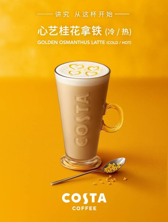 在COSTA COFFEE,這份專屬于秋季的風(fēng)味如約而至。自然清香的桂花風(fēng)味融入醇香經(jīng)典的拿鐵,富有果汁般順滑口感的同時(shí)又不失咖啡原有的質(zhì)感。暖意縈繞,一杯知秋,奶泡上綴以桂花原漿,愛心勾花呈現(xiàn)COSTA COFFEE心藝之作。