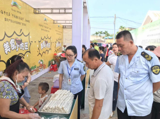 豐收節(jié)采取集市展銷的方式,不僅展示和銷售各鎮(zhèn)品牌特色農(nóng)產(chǎn)品,還設(shè)置了小吃街供游客重溫?zé)狒[的趕集氣氛,了解集市文化?;顒?dòng)前,瓊海市局工作人員協(xié)助舉辦方選取10家具備資質(zhì)的經(jīng)營(yíng)者參加此次活動(dòng)小吃展銷。活動(dòng)當(dāng)天,瓊海市局出動(dòng)執(zhí)法人員監(jiān)督各攤主嚴(yán)格按照食品安全相關(guān)要求規(guī)范操作,在現(xiàn)場(chǎng)查驗(yàn)各小吃攤位銷售人員是否佩戴健康證上崗、現(xiàn)制現(xiàn)售食品操作是否穿戴手套及口罩、食品儲(chǔ)存是否得當(dāng)?shù)龋_保此次活動(dòng)的食品安全得到保障。