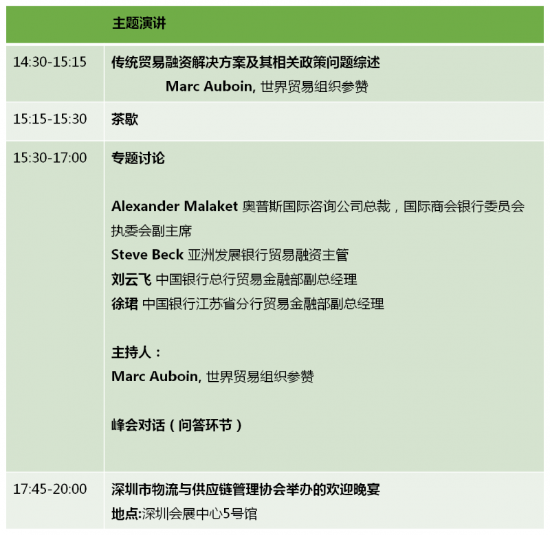 本屆峰會(huì)由世界貿(mào)易組織(WTO),深圳市人民政府,商務(wù)部國(guó)際貿(mào)易經(jīng)濟(jì)合作研究院聯(lián)合主辦,深圳市物流與供應(yīng)鏈管理協(xié)會(huì)、深圳市走出去戰(zhàn)略合作聯(lián)盟聯(lián)合承辦,將與物博會(huì)同期展開(kāi),為期兩天(10.11-12)。