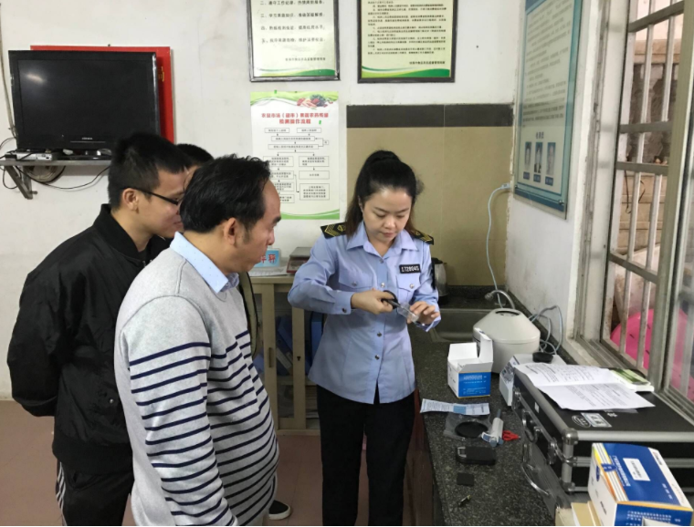 瓊海市塔洋食藥監(jiān)所現(xiàn)場指導(dǎo)農(nóng)貿(mào)市場開展快檢工作