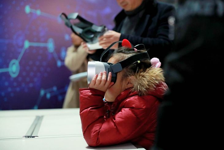 ▲小朋友沉浸在VR所創(chuàng)造的宇宙世界里