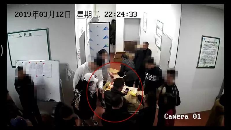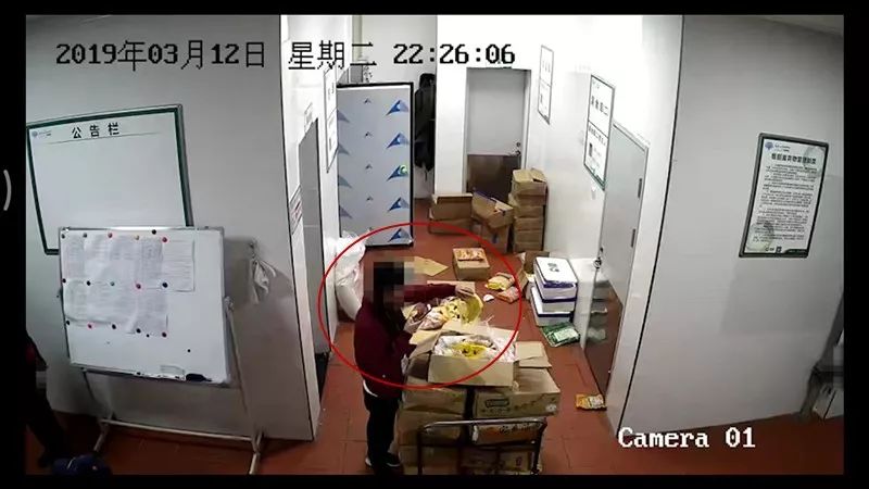 監(jiān)控畫面顯示,自21時08分,到22時24分一個多小時的時間里,有數(shù)撥家長,進進出出,他們同樣通過過道,進出凍庫,四處查看,撕開包裝,進行拍照,部分家長拿起食材查看又直接扔回包裝箱內(nèi)或者丟到地上。