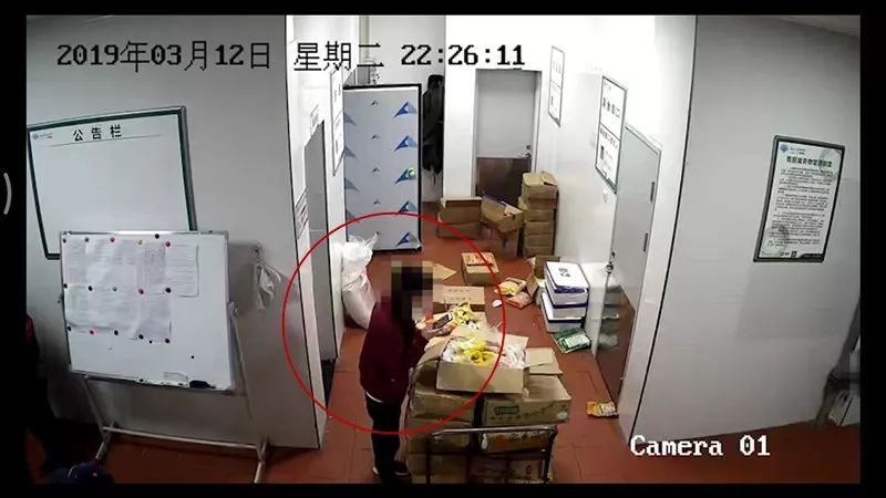 紅星記者看到。食堂庫房內(nèi)的一處監(jiān)控畫面顯示,12日晚19時12分,工作人員開始打開凍庫,將其中的食材一箱箱搬出,放到一個小型平板推車上,準(zhǔn)備移出運離,有部分食材被堆放在推車旁的地面上。19時18分,另有一名女性工作人員對現(xiàn)場搬出的食材進行著清點。