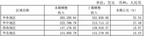 報告期內(nèi),公司產(chǎn)品在國內(nèi)市場的渠道滲透能力繼續(xù)增強,推動市占份額穩(wěn)步提升。公司銷售占比前四大銷售區(qū)域為華東、華中、西南、華北,銷售占比分別為32.34%、27.49%、18.07%、15.33%,這些區(qū)域仍是六個核桃營業(yè)收入的主要來源。而電商平臺本期收入突破12264.99萬元,同比增長131.46%,未來將繼續(xù)大力發(fā)展電子商務(wù)渠道。