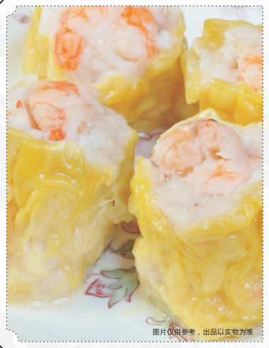 鮮蝦干蒸是南方人非常喜歡的一道菜,也是早茶必點的人氣點心之一。但蒸制時非常講究技巧,一旦蒸得不好就會有冷凝水滴落蝦干,賣相不好看,口感也會受影響。同樣地,我們先準備好食材,取一張燒麥皮包入適量肉餡,捏成燒麥形狀,放在蒸盤上,接著把蒸盤放入蒸烤一體機,選擇蒸模式,溫度設置為115℃,時間大概在14~17分鐘即可。