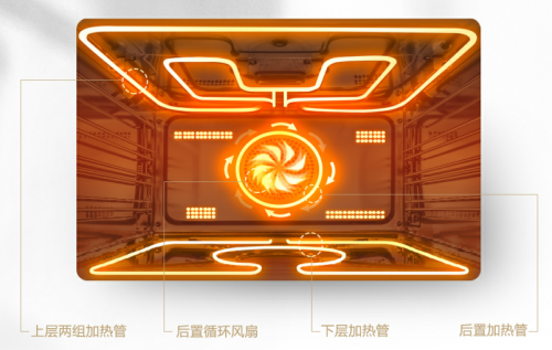 市面上很多品牌的蒸烤一體機,通常只有上層加熱管。老板蒸烤一體機C973A多了下層加熱管,增加了底部加熱的功能,使用范圍更廣泛,烘烤功能也比其他蒸烤一體機更全面,可以用來烤制絕大多數(shù)食物,尤其適合大多數(shù)面點烘烤,而且上色更加均勻。