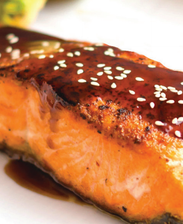 幾分鐘后,我們就可以戴上隔熱手套將烤盤取出,在三文魚上擠上檸檬汁,淋上芝麻,一道美味的照燒汁三文魚就大功告成了。