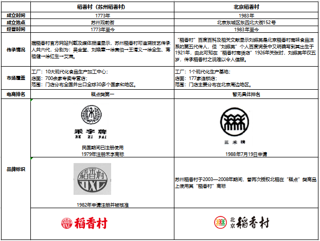 ▲蘇州稻香村與北京稻香村品牌概況對比圖