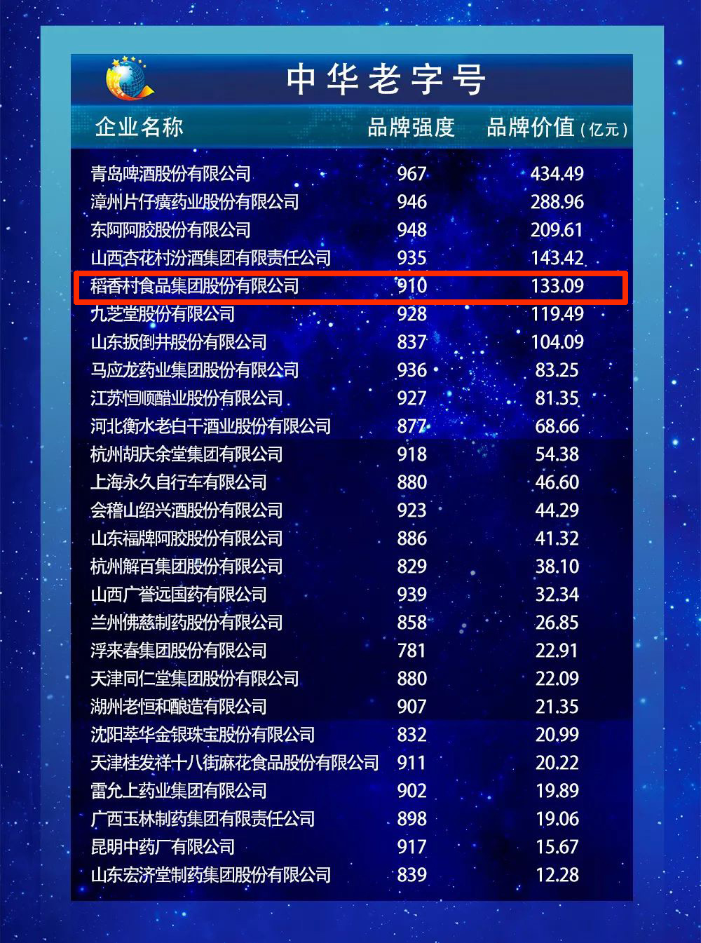 ▲2019年中華老字號vs食品加工品牌價值榜單