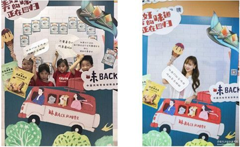 有別于周圍其他展位新潮網(wǎng)紅的裝潢風(fēng)格,「味BACK」的展位極具復(fù)古懷舊風(fēng),灰白的墻面,淺綠色的房檐,類似雜貨鋪的貨架,老上海版式的宣傳海報,每一樣都讓人回想起無憂無慮的童年。據(jù)了解,這是味BACK為了這次活動做出的特別設(shè)計,意在把大家?guī)Щ赜淇斓耐?。可愛?fù)古的照片墻,不僅引來眾多小朋友進行合影留念,也吸引無數(shù)網(wǎng)紅KOL前來打卡。