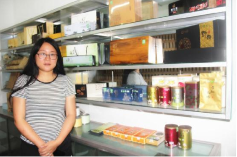 馬邊金星茶業(yè)開發(fā)有限責任公司總經(jīng)理魯潤與她的茶葉產(chǎn)品 本史巫果攝
