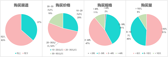 在單品選擇方面,超半數品鑒消費者單次購買大閘蟹數量均在8只以內,而規(guī)格3-4兩、價格20-30元/只的大閘蟹受到最多品鑒消費者歡迎。此外,參與品鑒的消費者對于大規(guī)格的大閘蟹更加偏好,同時在購買決策上也更加趨于理性。