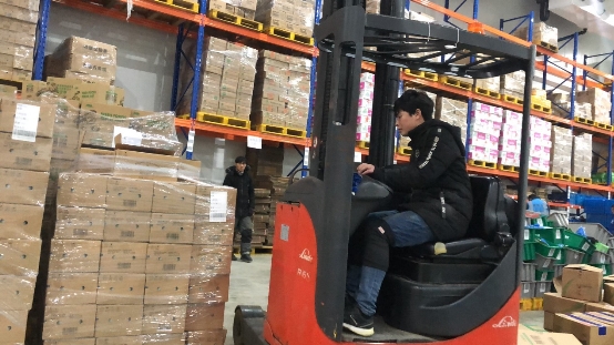 雙11凌晨12點(diǎn),只要消費(fèi)者在天貓等電商平臺(tái)上一下單,通過九曳供應(yīng)鏈自主研發(fā)的“生鮮云平臺(tái)”與電商平臺(tái)的無縫對(duì)接,上海云倉的揀貨人員張麥振幾乎能同時(shí)收到客戶訂單。剛過0點(diǎn),張麥振收到了雙11第一單,生產(chǎn)揀貨單之后他立馬打出揀貨單,進(jìn)入-18℃的冷凍倉,通過語音揀貨系統(tǒng),快速挑選出消費(fèi)者訂單里的生鮮產(chǎn)品,送到打包臺(tái)。
