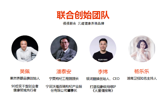 過(guò)硬的產(chǎn)品背后必定擁有一個(gè)強(qiáng)大的品牌,這個(gè)品牌集結(jié)了中國(guó)寧夏枸杞工程院的院長(zhǎng)潘泰安;銀河酷娛創(chuàng)始人、現(xiàn)象級(jí)網(wǎng)綜《火星情報(bào)局》的出名人李煒;湖南衛(wèi)視知名主持人楊樂(lè)樂(lè)。這樣一個(gè)強(qiáng)強(qiáng)聯(lián)合的品牌創(chuàng)始團(tuán)隊(duì),為經(jīng)銷(xiāo)商在推廣產(chǎn)品的道路上保駕護(hù)航,提供強(qiáng)有力的品牌支撐。