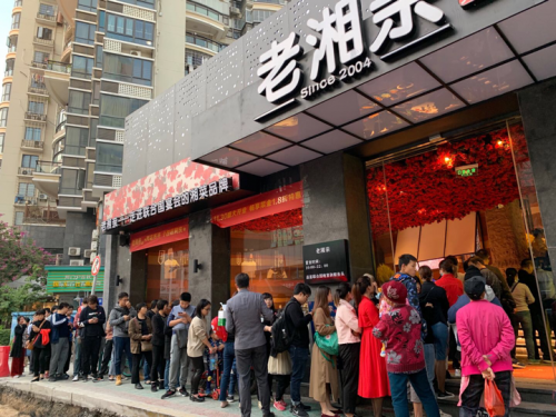 2019年11月的最后一天,“老湘親·品鑒湘菜”兩店齊開·十四店同慶。開業(yè)當(dāng)天,門庭若市,兩側(cè)綿延數(shù)百上千人的隊(duì)伍,只為一品佳肴。由于蓄客人數(shù)太多,在開門的那一瞬間,門外的顧客瘋狂涌入,可謂是上演了擠破門的現(xiàn)實(shí)版!