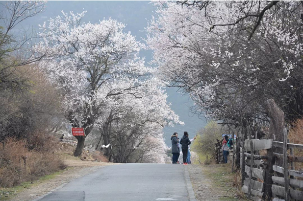 西藏的桃花,并不會相映紅,而有著一種清冷的美。