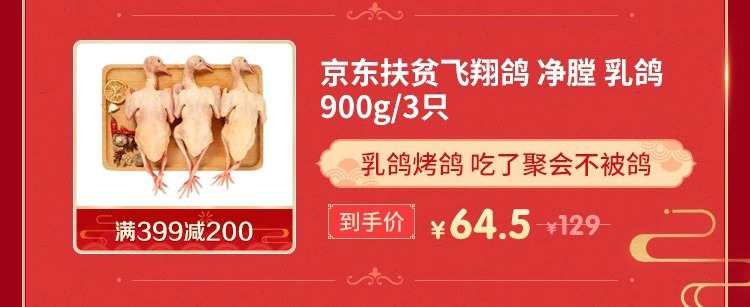 京東年貨節(jié)小年會(huì)場(chǎng),3斤重的林地散養(yǎng)柴雞,京東價(jià)128元,年貨節(jié)到手價(jià)只要108,而且買(mǎi)一贈(zèng)一哦!而2斤左右的贛南天養(yǎng)麻鴨,京東價(jià)59.9元,這一次29.95元即可到手,煲湯、紅燒樣樣都行,肉質(zhì)鮮美,全家都愛(ài)!京東扶貧飛翔鴿900g3只裝,到手只要64.5元,相當(dāng)于一只乳鴿才21.5元,而出口日本級(jí)鳳祥雞翅中,2斤裝只要44.95元,對(duì)比89.9元的京東價(jià),也是直接半價(jià)的超值待遇!